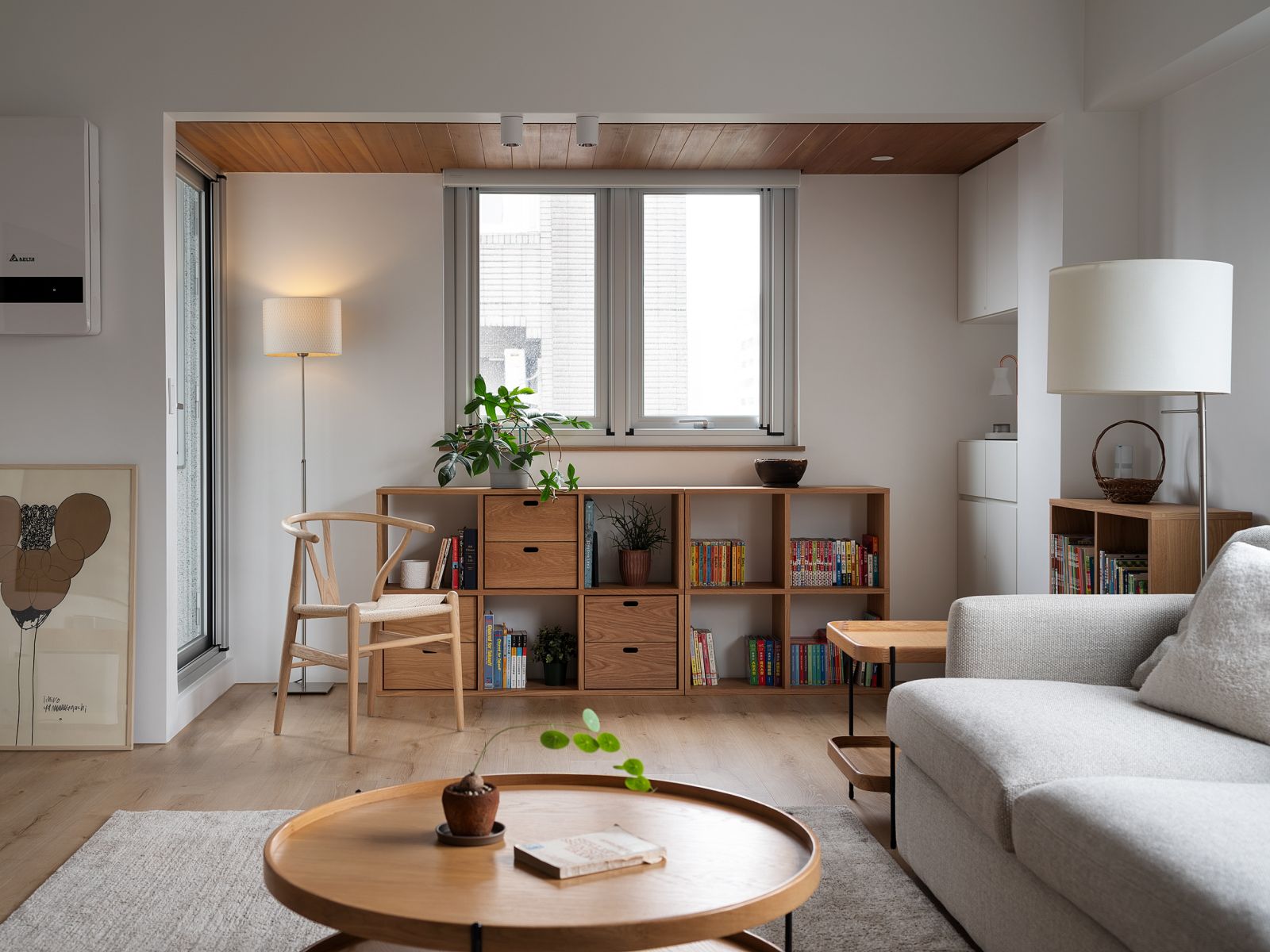 在本案,不管是陽台的擴大,或是客廳安排在最深度,都不是為了標新立異而做,而是形隨機能,先找到最適合的生活節奏,最後重新排列組合出理想的空間感。完工後,屋主回饋很喜歡整體配置,既實用、舒服,清潔維護也很方便,實現自己的理想居家。